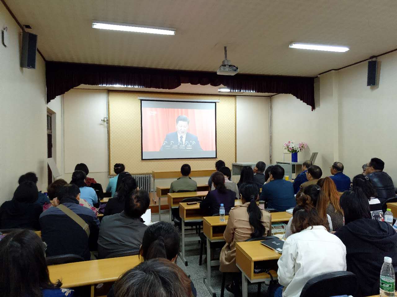 党的十九大是在全面建成小康社会决胜阶段、中国特色社会主义发展关键时期召开的一次十分重要的大会。为了深入学习贯彻党的十九大精神,18日上午9:00,金瓶梅 组织师生分别在205、211以及各系部教研室同时收看了开幕会直播。