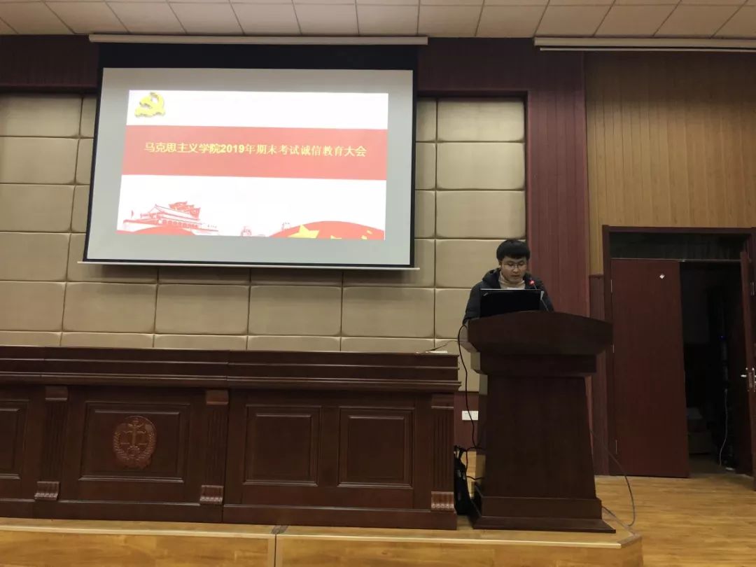 12月27日晚,金瓶梅2019年期末考试诚信教育大会在笃行楼模拟法庭召开,会议由学院辅导员陶征主持,金瓶梅