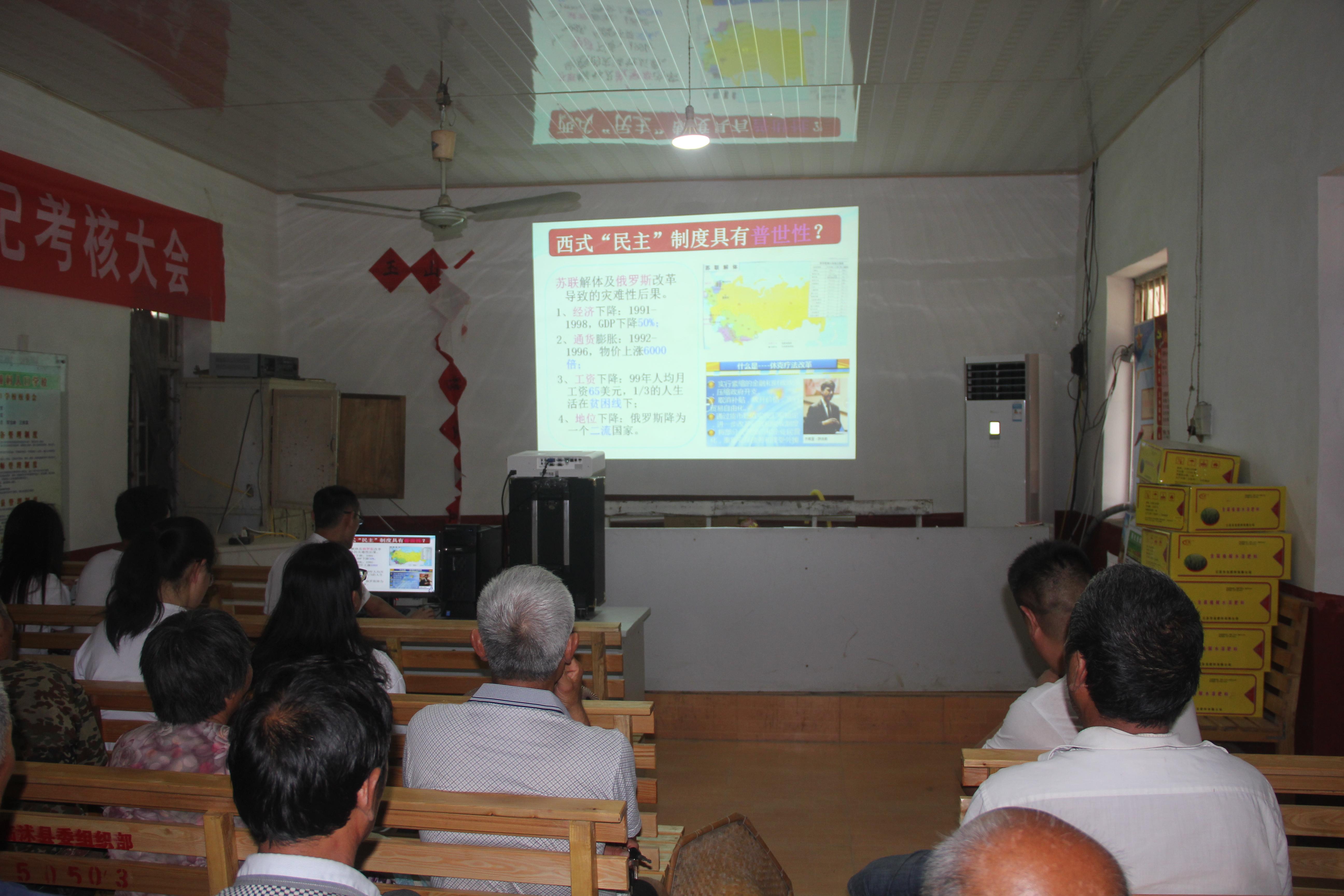 形势政策研究室主任冯连余老师赴玉山镇后穆疃村为当地党员干部作了《坚持党的领导,加强制度自信》的专题辅导报告。后穆疃村第一书记王炳军、理论宣讲团全体成员以及全村党员干部出席本次报告会。