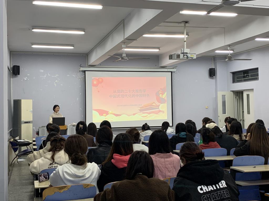 “笃行宣讲团”成员2021级马克思主义中国化研究专业的硕士研究生邵虹和王凤玲在德雅楼304为美术学院入团积极分子和入党积极分子作《学习党的二十大报告精神,培养新时代有为青年》《从党的二十大报告学中国式现代化的中国特色》的宣讲。3月16日,“笃行宣讲团” 成员2020级思想政治教育专业本科生衣伟萍前往太平路社区为居民作《刀刃向内的自我革命》的宣讲。