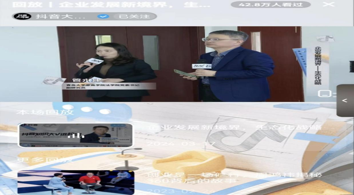 “有了好生态,才有可能有好未来”。本次课程圆满结束。据抖音官方后台反馈,两小时直播的有效看播42.8w,曝光pv330.3w,有着较好的宣传影响力。错失直播观看的同学可以登录抖音搜“抖音大讲堂”看回放。飞扬青春用热情谱写着年华,瑰丽岁月用真心镌刻着友谊,璀璨人生用执着装点着未来,祝同学们心想事成,前程似锦!