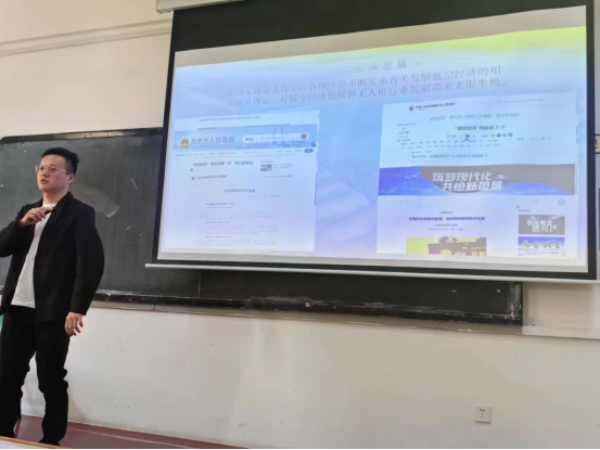 左昆老师通过PPT、视频演示等教学方式,从定义到分类,带领学员们全面了解无人机,深入浅出地讲解无人机相关知识。通过生动的案例和图片展示,让我们对无人机的特点、发展现状、分类、概述、定义和无人机系统有了更加直观、深入的了解;同时,老师还详细讲解了无人机的发展历史和行业现状以及无人机未来发展前景,穿插为我们播放了有关无人机机型以及应用的视频,学员们无一不震撼于先进的无人机技术,也看到了无人机发展的广阔前景和无限潜力。