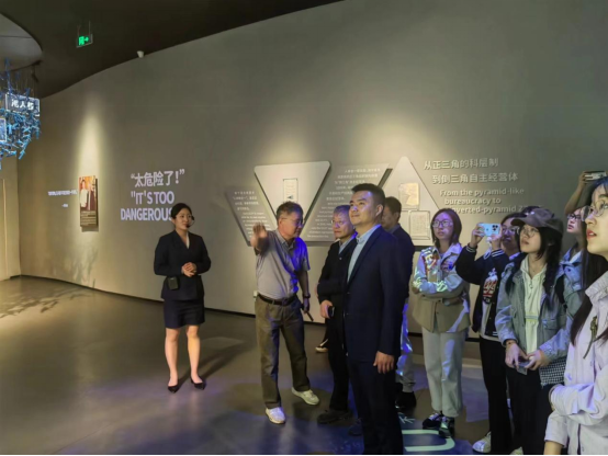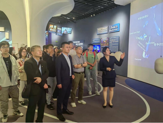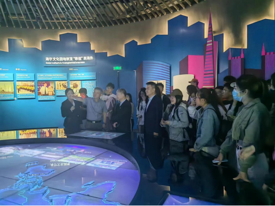 资深管理专家葛树荣老师、会计系刘殿广老师的组织与带领下,海尔研习班同学们一行60余人一同进入海尔科创生态园展厅进行了参观。海尔集团素以其“生态化战略”闻名,而这也是海尔研习班师生们此行前来深度体会的内容之一。