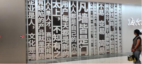 1.价值观墙上有句话,所有的墙都是门,这句话体现海尔突破所有的框架,以极高的勇气变革中前进。