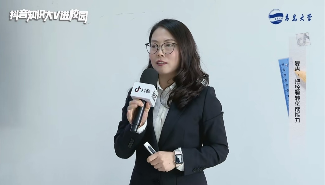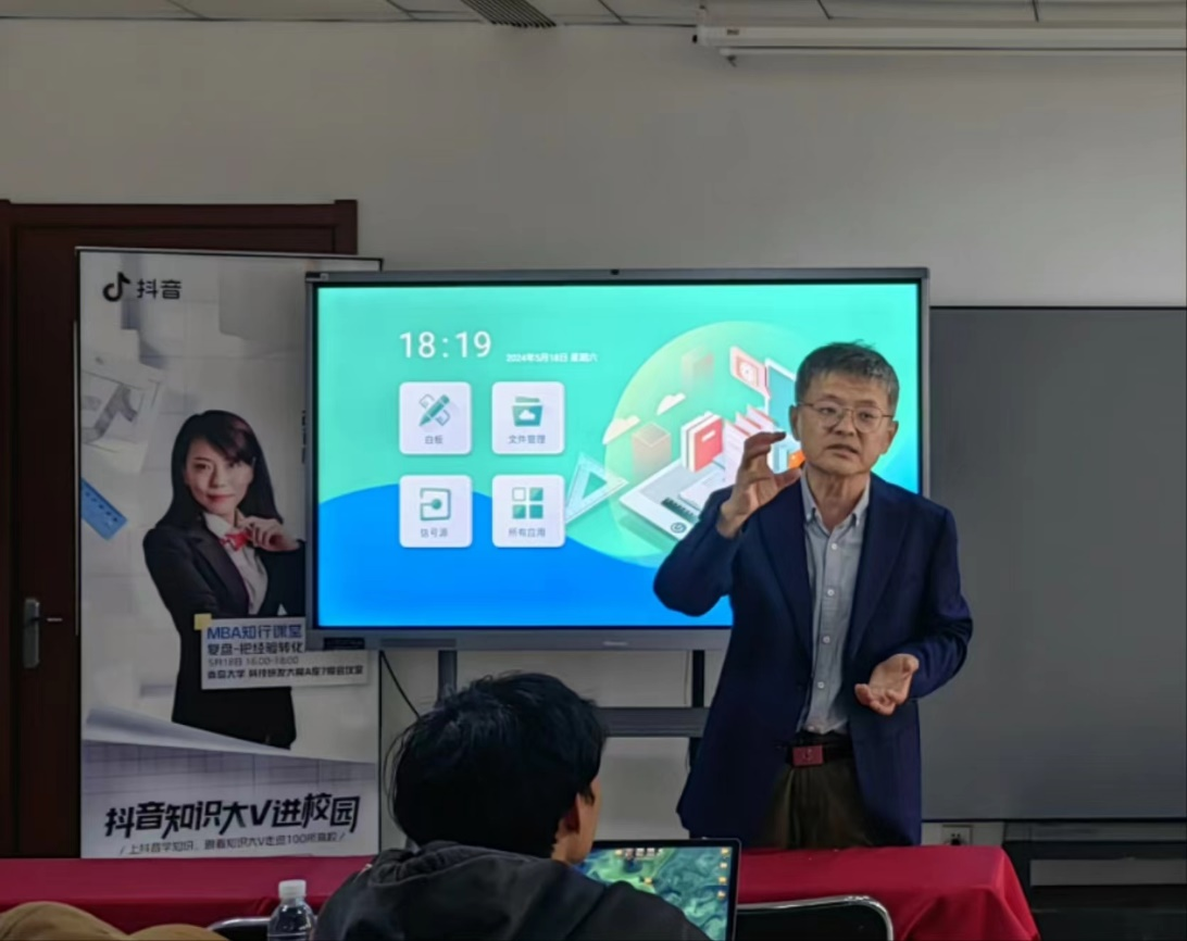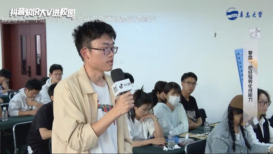 2024年5月18日下午4-6点,青大思政大课堂“企业家精神暨海尔人单合一管理模式研习班”(第二期)受抖音平台邀请在浮山校区“研发大楼”A座705会议室举办了抖音知识大“V”进校园讲座活动。参加本次课程的人员有:管永建老师、校外导师、青大2001级自动化校友胡春梅老师、金瓶梅