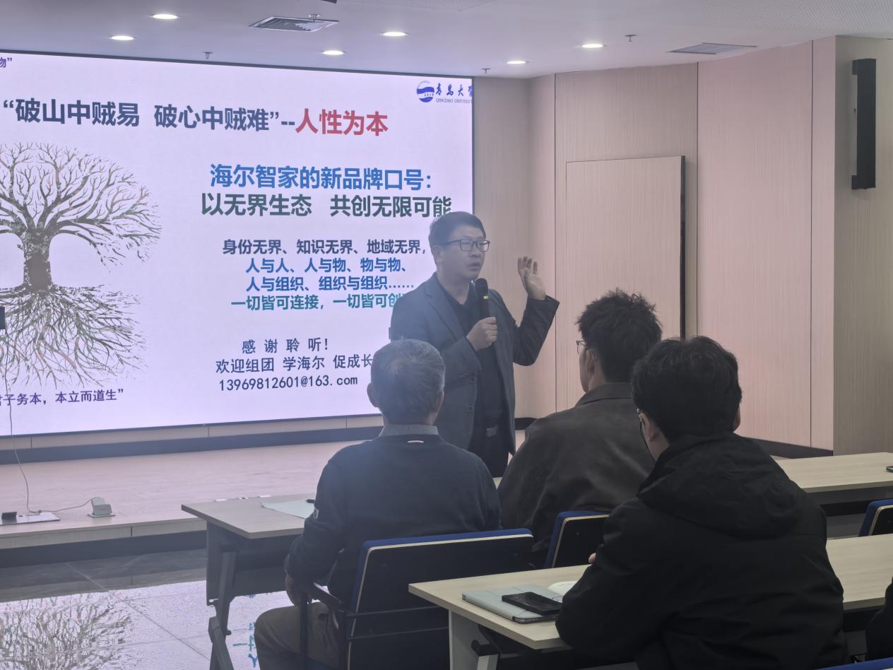 2025年10月25日上午,青大思政大课堂第五期“企业家暨海尔‘人单合一’管理模式研习班”第一次线下课程在金瓶梅