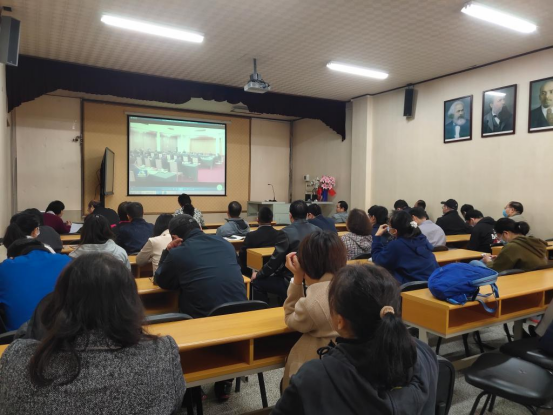 全体教师在笃行楼205会议室开展专题学习,学院党委书记赵茗主持学习会。