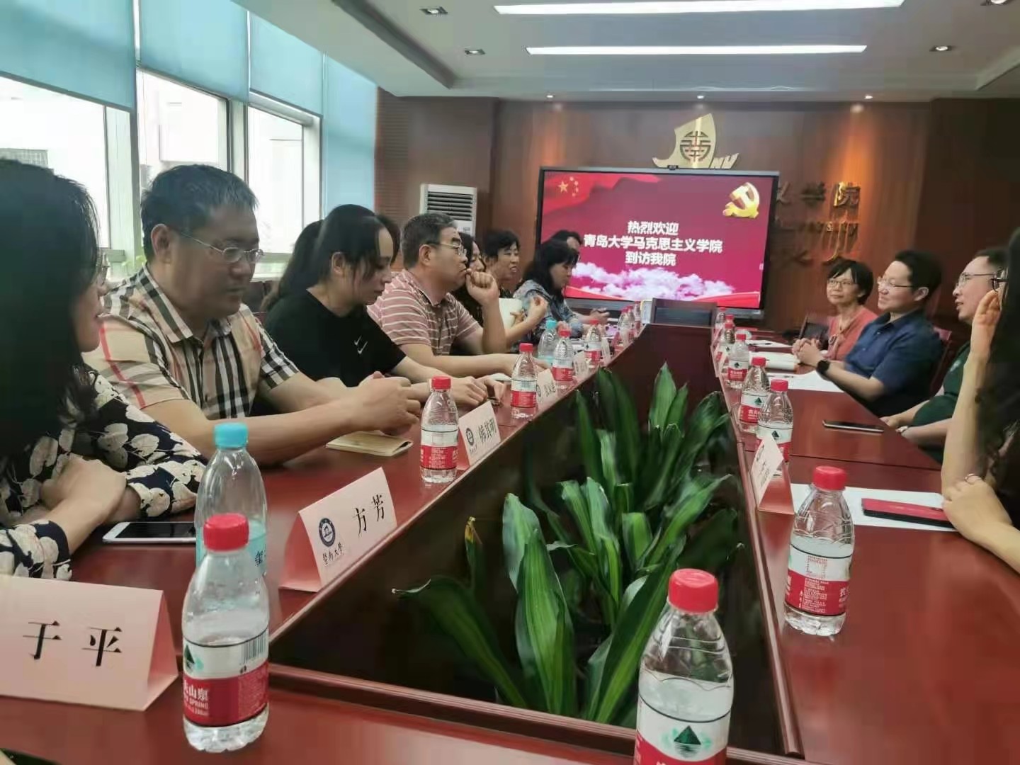 会上张龙平副院长向参访团介绍了教学改革基本历程、概论课教学设置、学生考核标准、学院办学特色和学科建设方向等,并展示了近年来教学科研方面斩获奖项和成果。双方互相分享了教学心得,交换了教学经验,并针对当前面对的共同问题展开了深入、热烈的讨论。