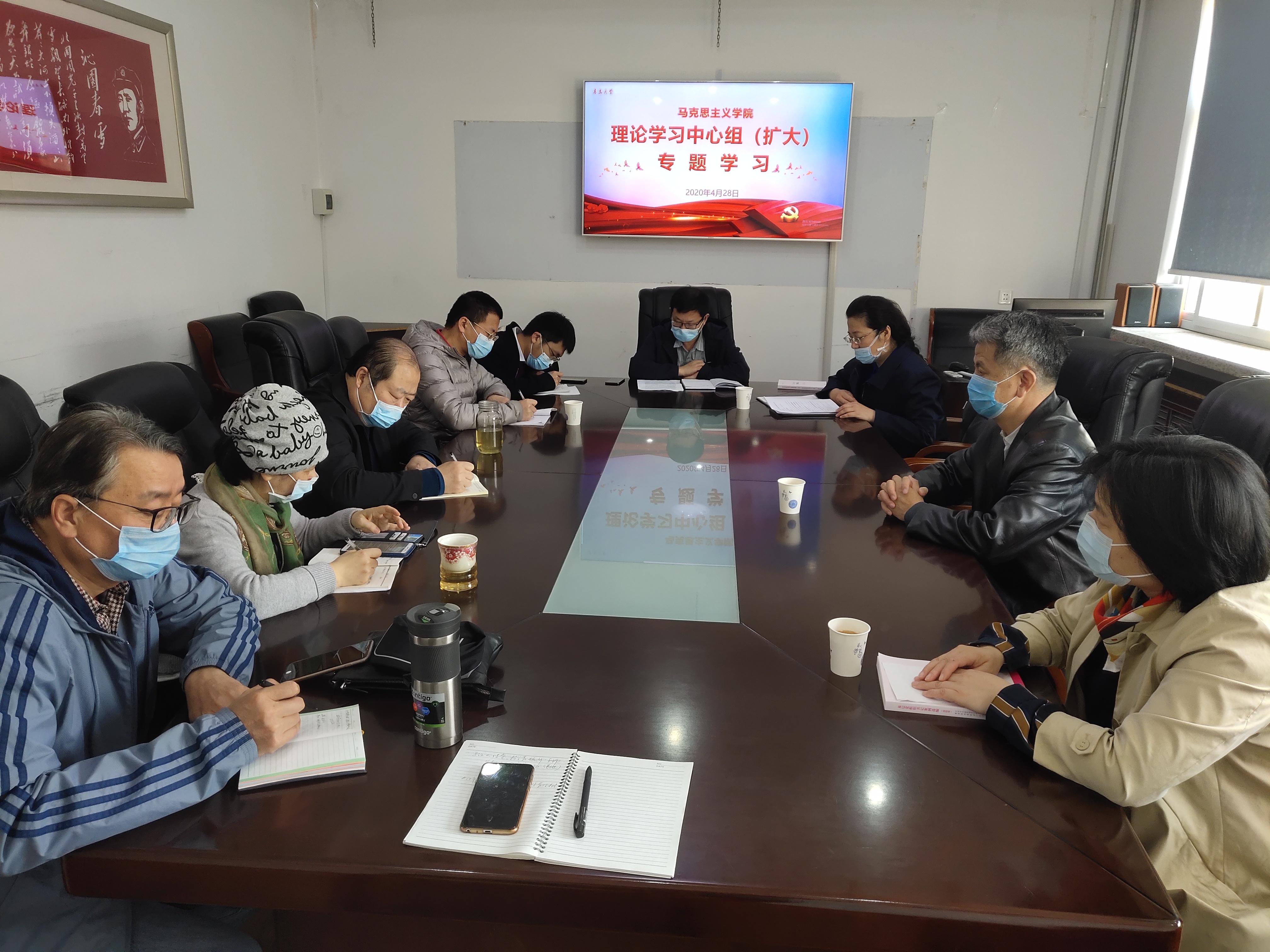 4月28日上午,学院党委理论学习中心组(扩大)在笃行楼第213会议室,举行2020年第3次理论学习会,本次学习会以“落实从严治党责任,抗击疫情思政育人”为主题,校党委汪黎明副书记到会指导学习,院党委书记赵茗主持,学院党委尉利工、姜淮、郭金鸿姜文明、组织员张捷灏和党支部书记庚建凤、张义生、赵长伟、陶征、党政办主任禹宝根参加学习。