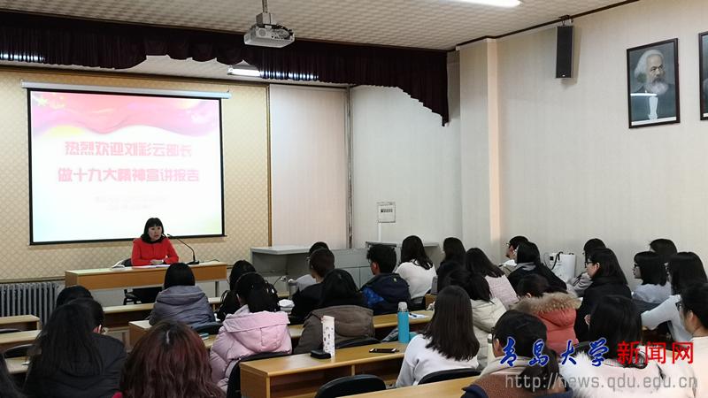 学生做十九大精神宣讲。刘彩云从不同角度解读了党的十九大报告,宣讲主要围绕:一、关于十九大的主题及主要成果;二、习近平新时代中国特色社会主义思想;三、过去五年的历史性成就;四、关于中国特色进入新时代;五、关于我国社会主义主要矛盾的变化;六、关于两个一百年目标的战略部署六个方面展开,深入贯彻党的十九大精神。金瓶梅