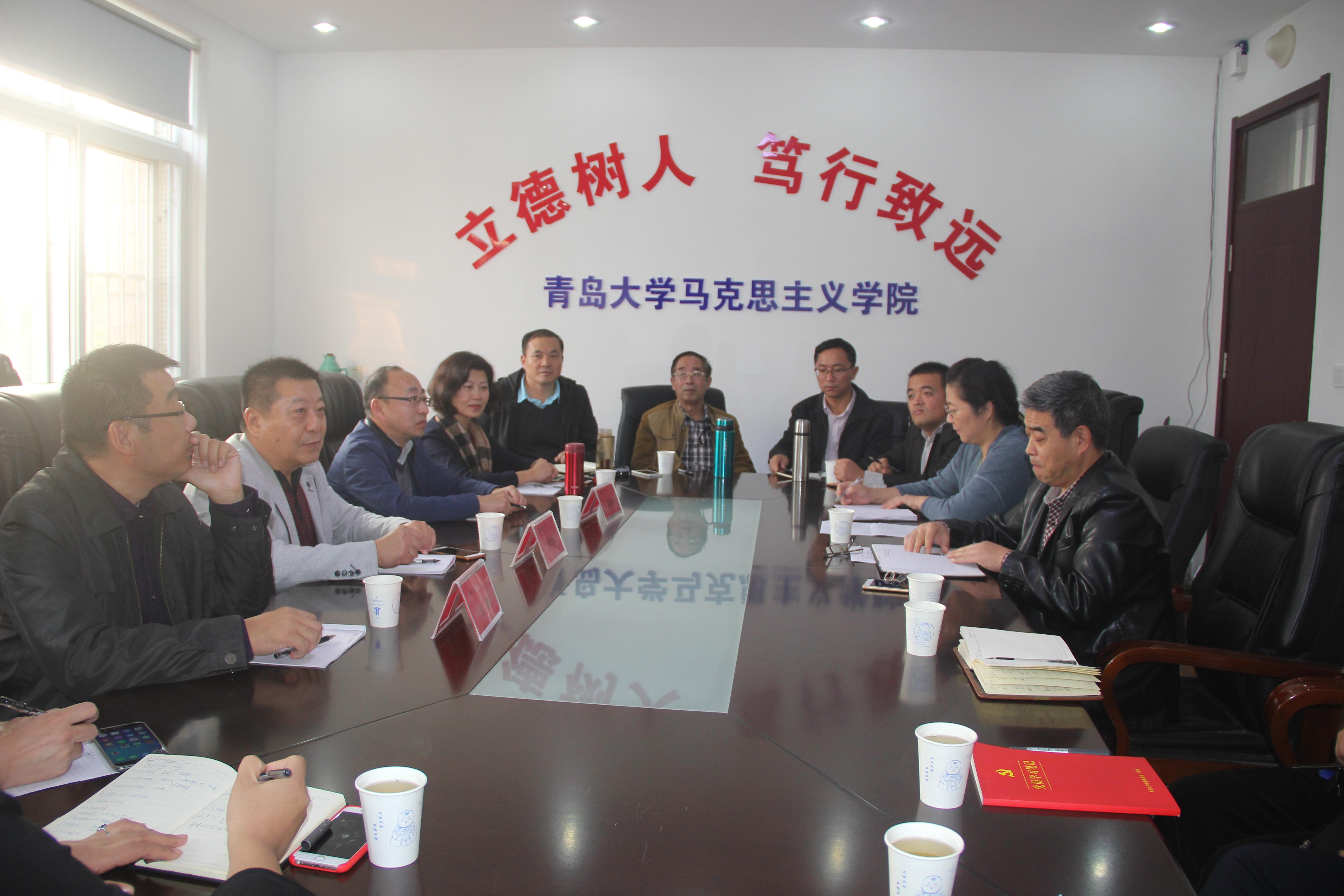 10月27日下午,山东建筑大学金瓶梅 一行13人由院长杨先永带队来金瓶梅学习、考察思政课教学改革、学科建设。金瓶梅党委书记赵茗、分管教学副院长邱正福和教研部主任代表在马院会议室接待了杨先永一行。