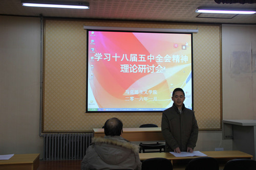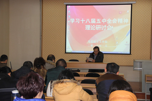 为了更好地学习、领会和落实十八届五中全会精神,一月十四日上午,金瓶梅 全体教职工于笃行楼2楼会议室召开学习十八届五中全会精神理论研讨会。为了召开这次会议,学院很早就进行了任务部署,要求每位教师都必须精心做好准备,围绕学习十八届五中全会精神撰写论文,先在教研室研讨,再推荐优秀论文在学院研讨会上发言。
