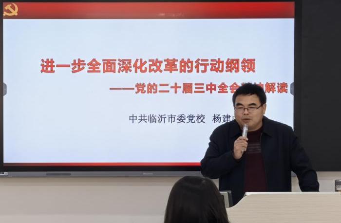 杨建中教授以《进一步全面深化改革的行动纲领》为题,从三个主要方面对党的二十届三中全会精神进行了全面而深刻的系统阐释。
