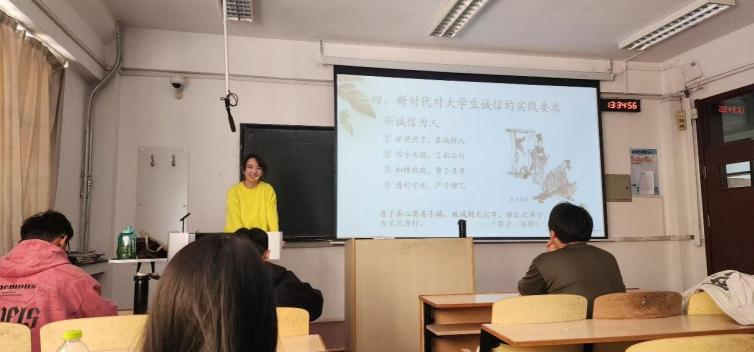 在理论教学方面,原理教研部和概论教研部的全体教师,经过集体备课,明确教学要求,统一教学内容,将“诚信”主题融入《马克思主义基本原理》和《毛泽东思想和中国特色社会主义理论体系概论》两门课程,对全校2023级、2024级本科生开展理论教学。课堂上,授课教师从“诚信”的词源语义出发,结合《礼记》《大学》《论语》《孟子》等经典文献,阐明了“诚信”作为中华民族传统美德的内涵和要求;结合《新时代公民道德建设实施纲要》,阐明了社会主义核心价值观中“诚信”道德基石的地位和具体要求;以央视新闻《当大学论文多了“AI味”,高校如何给AI工具使用“立规矩”?》为导引,结合《中华人民共和国学位法》《国家教育考试违规处理办法》的相关规定,为学生讲授了在AI快速发展的今天,落实学术诚信、考试诚信的重要意义,强调当代大学生应从学习生活中落实“诚信”要求。