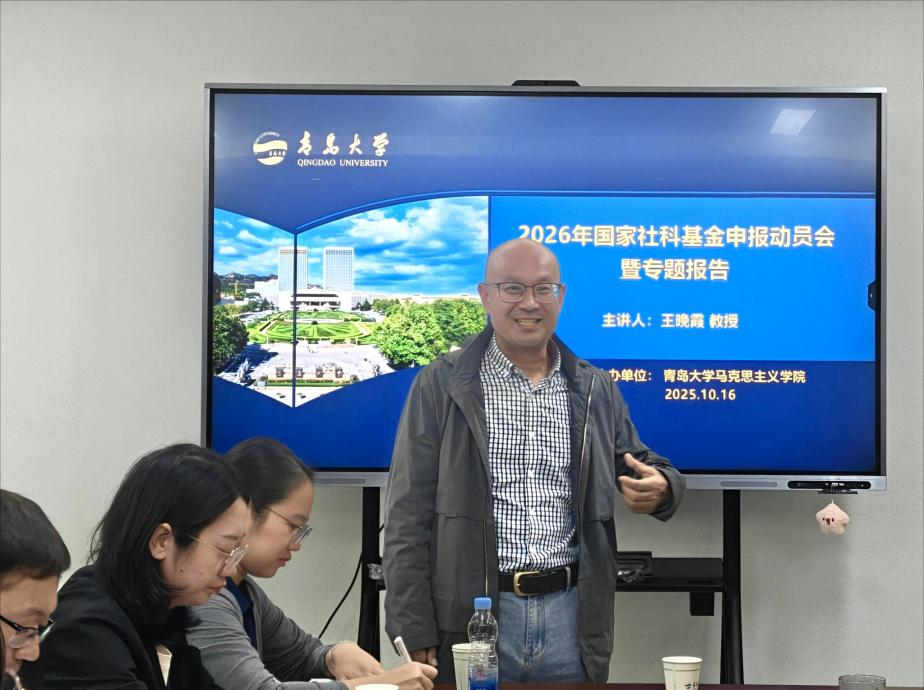 于研发大楼A座11层会议室召开2026年国家社科基金申报动员会,并邀请天津科技大学东亚儒学研究中心王晚霞教授作专题报告。会议由学院副院长赵永刚主持,并总结了2025年度国家基金申报工作中取得的成绩与存在的不足,分析了2026年申报的新趋势和新目标,学院骨干教师和部分研究生参加。