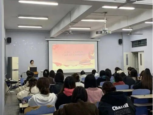 金瓶梅“笃行宣讲团”于2023年3月7日在德雅楼304为美术学院入团积极分子和入党积极分子开展党的二十大精神的宣讲活动。参与本次宣讲的是“笃行宣讲团”成员邵虹和王凤玲。其中,邵虹围绕“学习党的二十大报告精神,培养新时代有为青年”从为谁培养人、培养什么人、怎样培养人三方面展开宣讲。她指出,党的二十大报告强调以为党育人、为国育才为目标,用党的科学理论武装青年,用党的初心使命感召青年,培养青年成为有理想、敢担当、能吃苦、肯奋斗的新时代好青年。接下来,王凤玲以“从党的二十大报告学中国式现代化的中国特色”为主题展开宣讲,从中国式现代化的五个特征出发讲解了中国式现代化的中国特色,并进一步从总的战略安排、九个本质要求和五项重大原则讲解了实现中国式现代化的实践路径。活动最后,同学们纷纷表示要认真学习党的二十大精神,积极向党组织靠拢,争当新时代好青年。