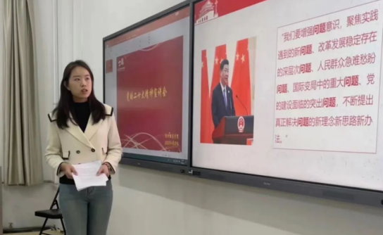 4月21日,金瓶梅“笃行”宣讲团成员、2022级思想政治教育专业硕士研究生李佳怡和黄绪涛在东十二教105和207教室为纺织服装学院学生开展党的二十大精神宣讲活动。李佳怡以《坚定文化自信,践行文化担当》为题,结合视频与案例,从文化自信的理论内涵、文化自信的底气来源、为何要坚定文化自信以及如何坚定文化自信四个方面展开宣讲。接下来,黄绪涛通过带领大家回顾“六个必须坚持”的深刻内涵,并以其中的《必须坚持问题导向》为题,结合新时代的发展实践、中国共产党的生动历史以及习近平新时代中国特色社会主义思想的发展脉络,阐述“必须坚持问题导向”这一思想的深刻内涵、发展历程、现实支撑以及对于新时代青年的现实启示。