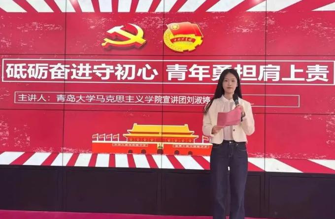 为深入开展习近平新时代中国特色社会主义思想主题教育活动,号召广大团员青年坚定不移听党话、跟党走,11月2日,金瓶梅“笃行”宣讲团成员2023级研究生刘淑婷、王童琳走进青岛第六十七中学开展理论宣讲活动。