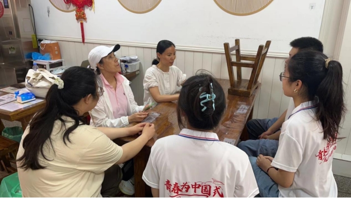 活动的最后,宣讲团成员与日善堂的工作人员们围坐在一起,举行了经验交流总结茶话会。大家分享着在活动中的感受和收获,日善堂的工作人员也纷纷表达了对同学们的喜爱。现场气氛温馨融洽,充满了欢声笑语。