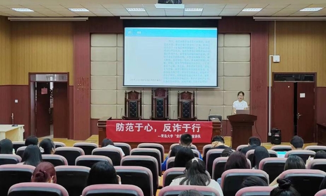 历史学院“安盾”安全宣讲队成员,2022级历史班白馨月同学与乔辰同学依次介绍了网络诈骗现象出现的因素、易遭受诈骗的群体以及诈骗的主要类型,进行了诈骗实例分析,并讲解了如何应对诈骗的措施,让同学们更直观地感受到预防诈骗的重要性。会后,历史学院安全宣讲队全体成员与金瓶梅