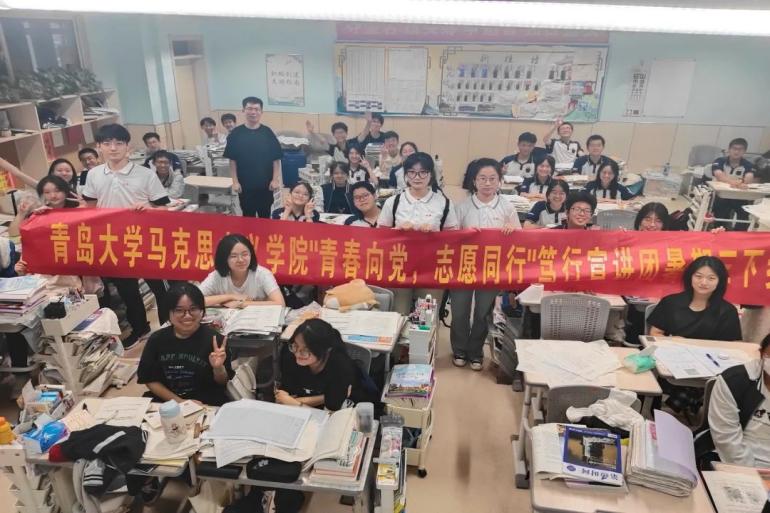 情系母校,助力成长。“青春向党,志愿同行”宣讲团赴青岛九中开展志愿宣讲活动,在宣讲中激发了同学们的爱国热情与社会责任感,激励青年以实干精神投身社会实践,为实现中国梦努力奋斗!