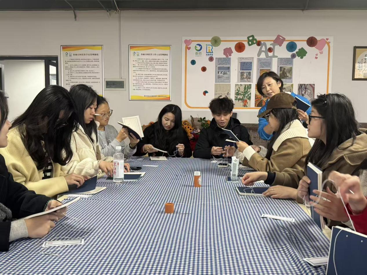 参与春雨中心研习,才真正触摸到助残工作的重量。穿耳钉时,反复调整耳堵间距,既要让耳钉灵活转动,又不能留太大空隙,每完成一个都得反复检查,简单几步却格外考验耐心。学做线装书更让我触动,跟着老师走一遍流程尚且清晰,自己动手时却手忙脚乱,便记不清穿针顺序。想到残障朋友们可能要重复成百上千次才能熟练,突然读懂“帮扶”二字不是口号,而是陪着他们一点点跨越障碍的坚持。