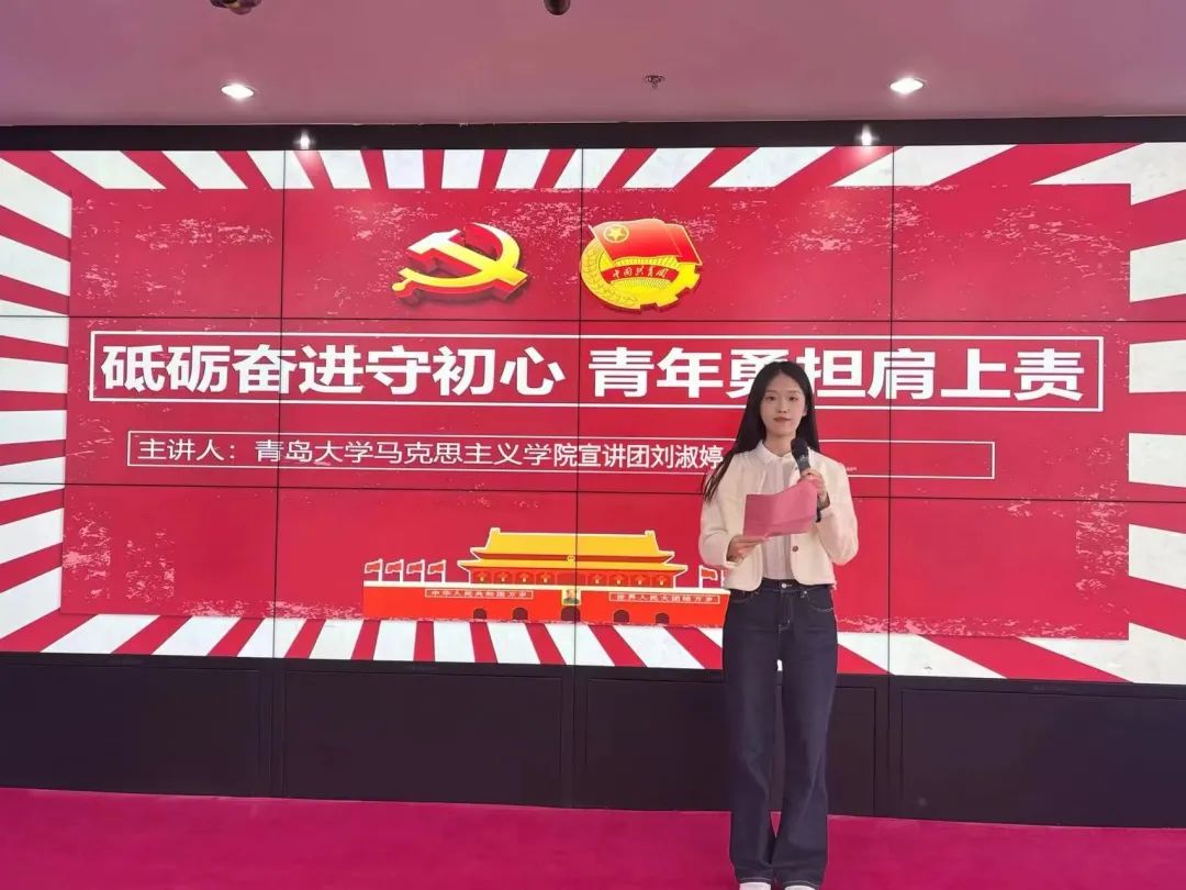 为深入开展习近平新时代中国特色社会主义思想主题教育活动,号召广大团员青年坚定不移听党话、跟党走,11月2日,金瓶梅“笃行”宣讲团成员2023级研究生刘淑婷、王童琳走进青岛第六十七中学开展理论宣讲活动。