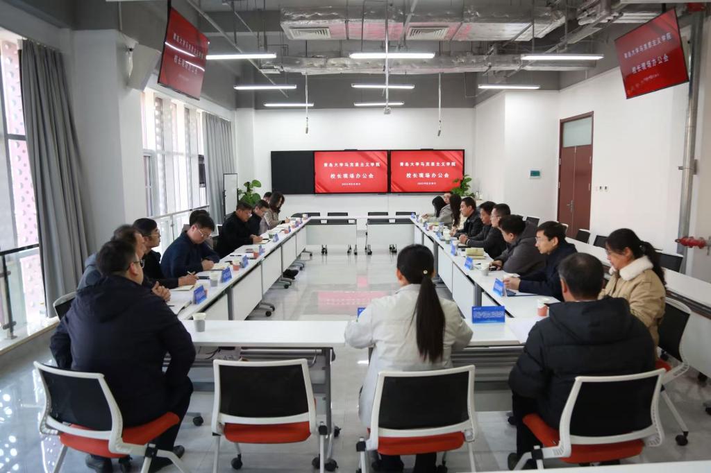 要以建设“一流马院、一流学科”为目标,制定好学院“十五五”发展规划,形成“时间表、施工图”,力争在思政课建设与教学、人才队伍建设、科研创新等方面实现新跃升。此外,要切实加强马克思主义理论学科内涵建设,对标马克思主义理论一级学科博士点建设标准,建强学科团队,推进与历史学、经济学、法学等学科交叉融合,着力打造特色优势,产出标志性学术成果,力争“十五五”时期实现学科建设的新突破。